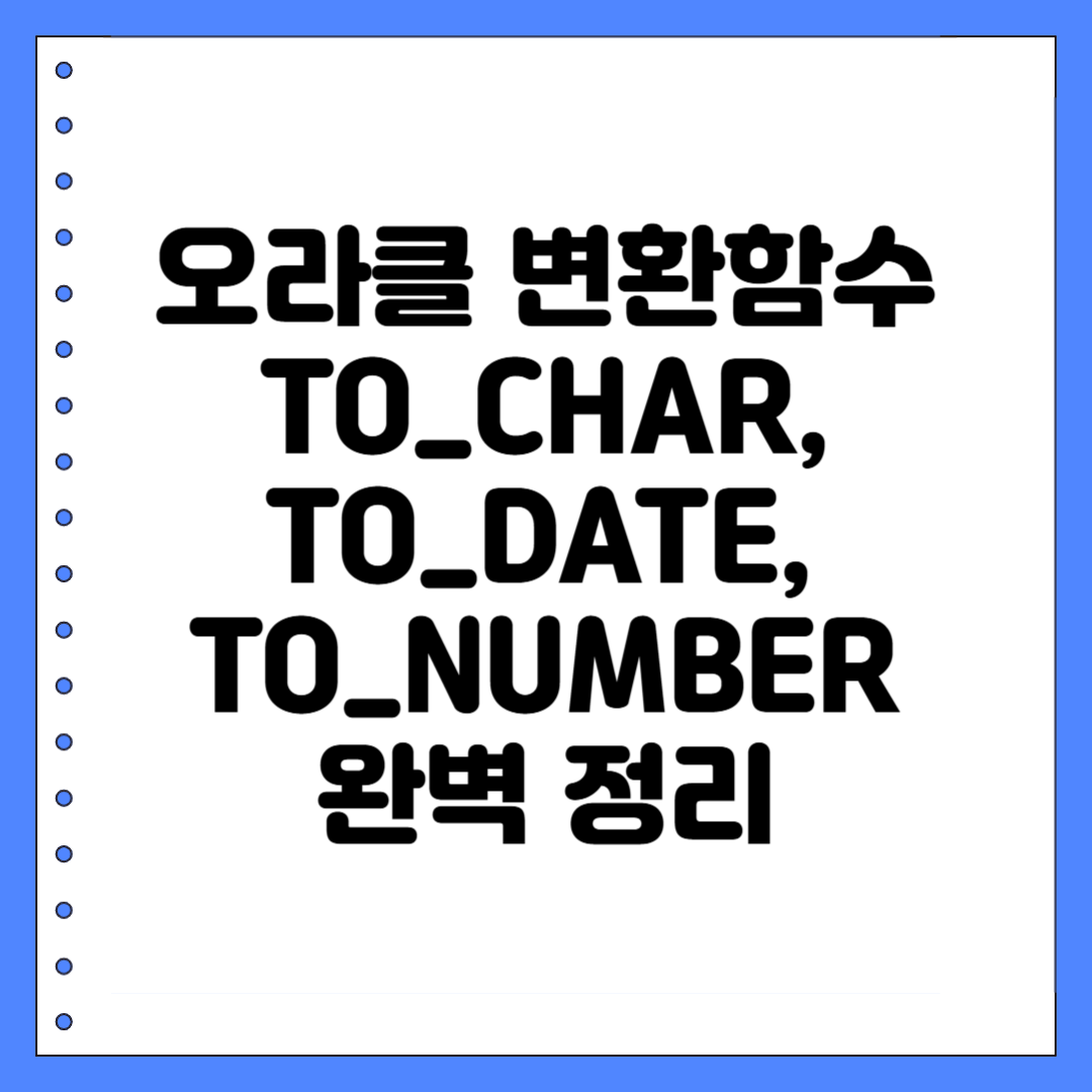 TO_CHAR, TO_DATE, TO_NUMBER는 오라클 SQL에서 가장 많이 사용되는 기본 변환 함수입니다.